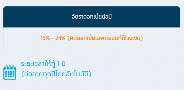 - ให้กู้นาน 1 ปี ต่ออายุทุกปีอัตโนมัติ