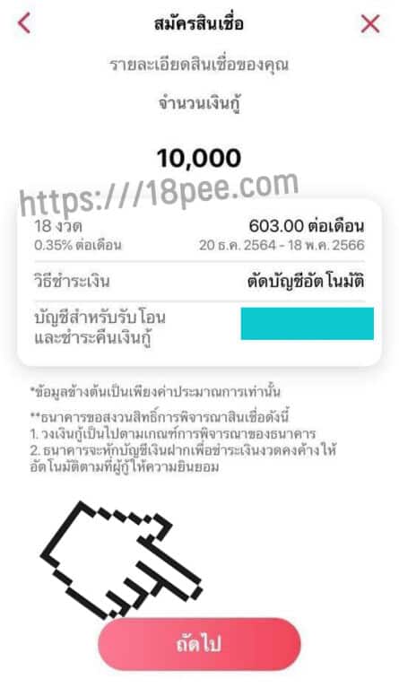 - เมื่อมีรายละเเอียดสินเชื่อแล้ว จึงจะใช้เงิน 10,000 บาทได้