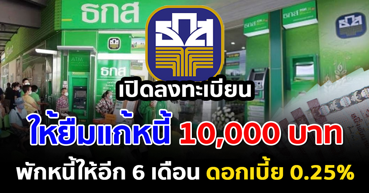 ธกส.ใจดีให้ยืม 10,000 บาท พักหนี้ให้อีก 6 เดือน ดอกเเค่ 0.25%