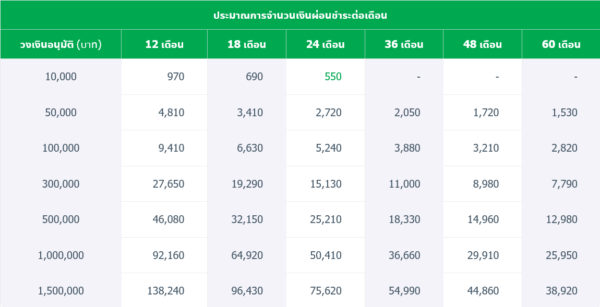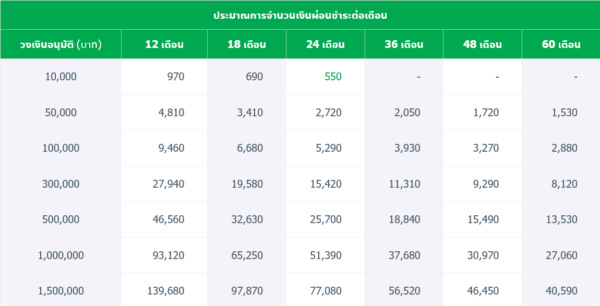 1. อัตรๅดอกเบี้ยและระยะเวลๅผ่อนชำระ (อัตรๅแบบลดต้นลดดอก)