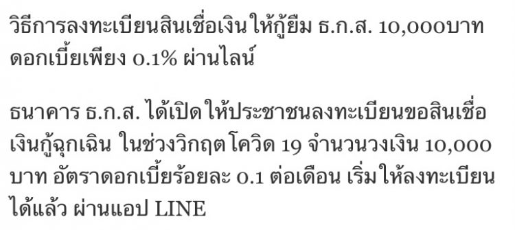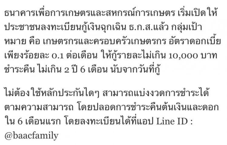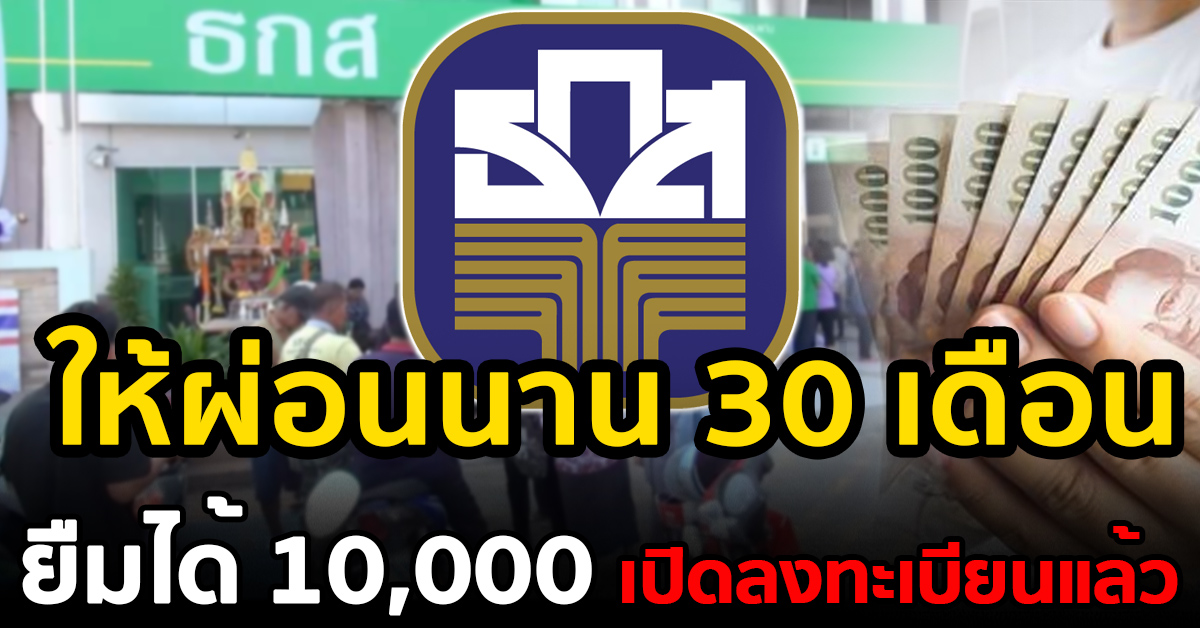 สินเชื่อพิเศษ ธ.ก.ส. 10,000 บาท ไม่ต้องค้ำ ผ่อนนาน 30 เดือน