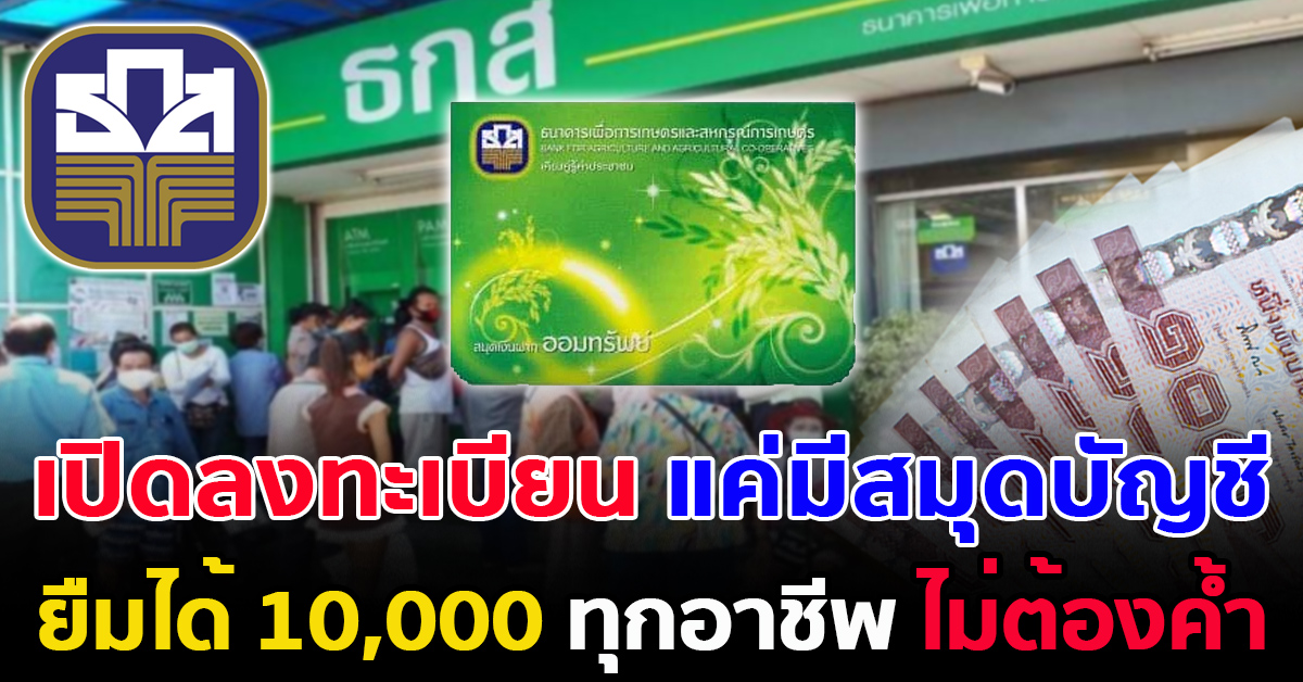 สินเชื่อ ธกส. 1 หมื่น ไม่ต้องค้ำ ให้ทุกอาชีพ แค่มีสมุดฝาก