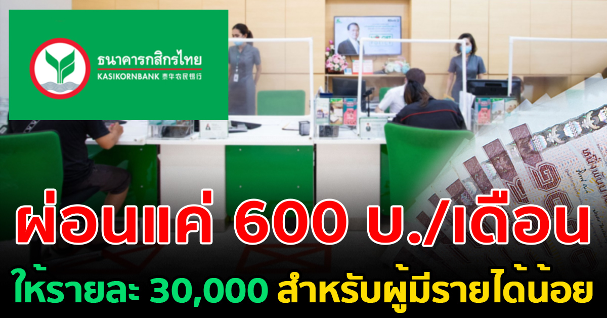 รายได้น้อย กู้ยืมได้ ให้รายละ 3O,OOO บาท ผ่อน 6OO ต่อเดือน สินเชื่อจากกสิกร