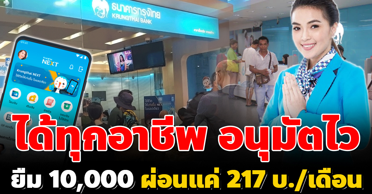 กรุงไทยให้ยืม ได้ทุกอาชีพ อนุมัติไว 1 หมื่น