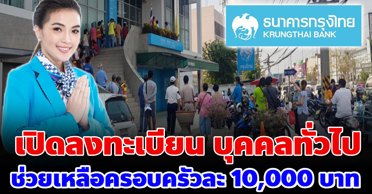 ลงทะเบียนบุคคลทั่วไป กรุงไทย ให้รายละ 10,000 บาท ช่วยเหลือครอบครัว