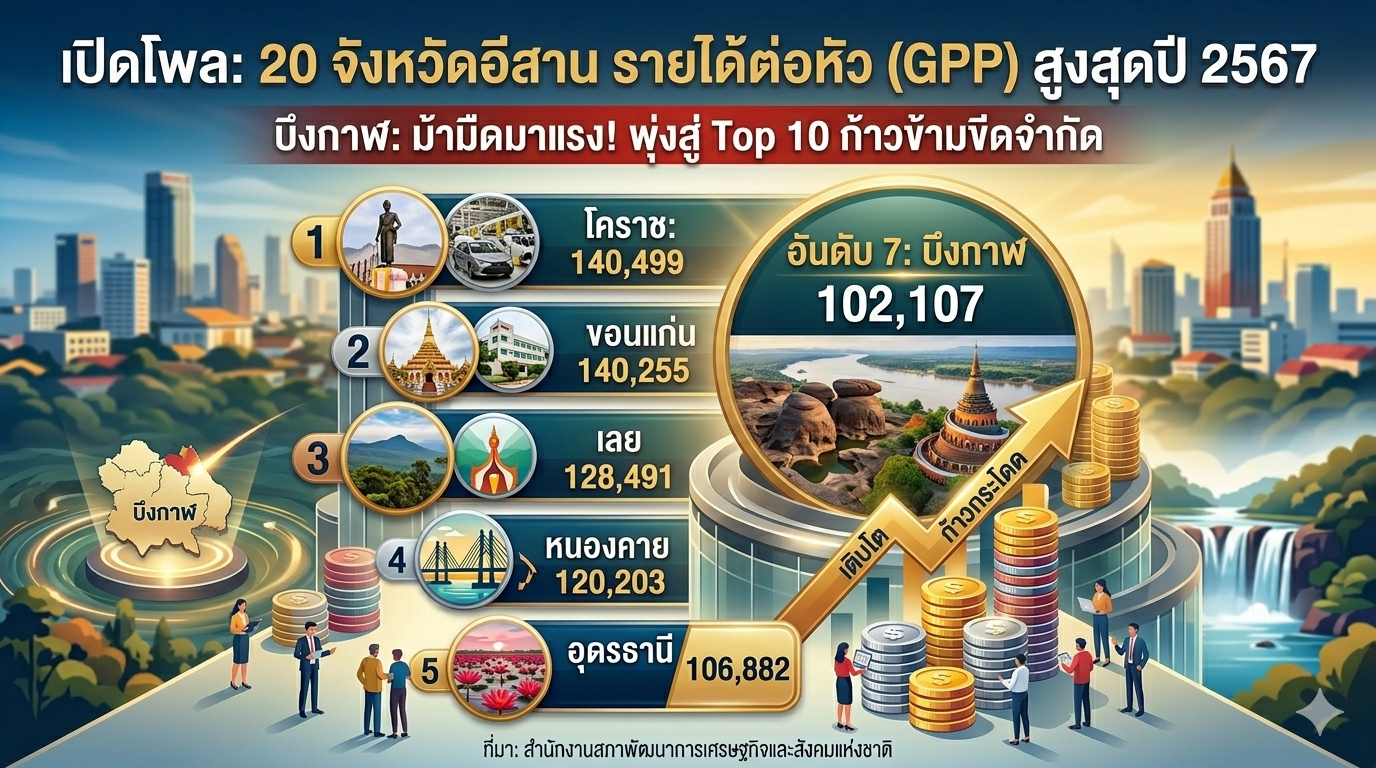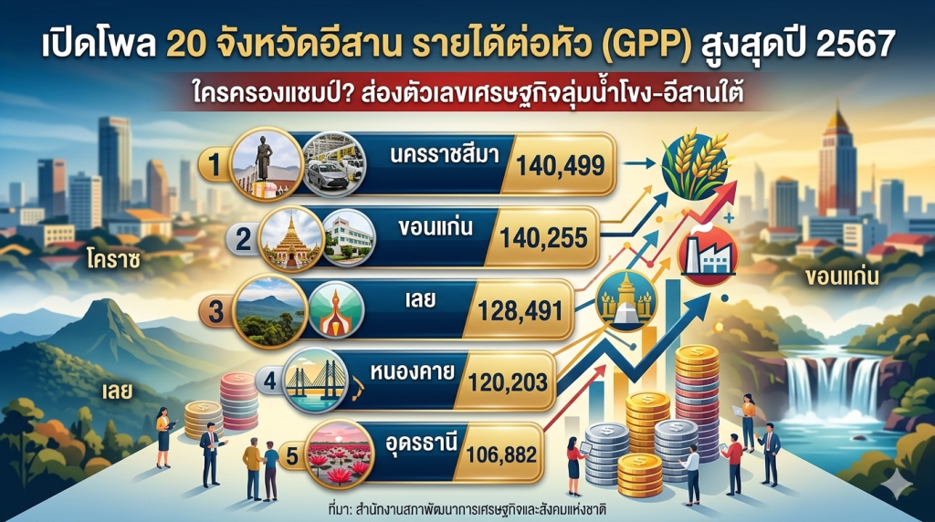 เจาะลึก 20 จังหวัดอีสาน รายได้ต่อหัว (GPP) สูงสุดปี 2567: ใครคือเบอร์ 1 แห่งภาคตะวันออกเฉียงเหนือ?